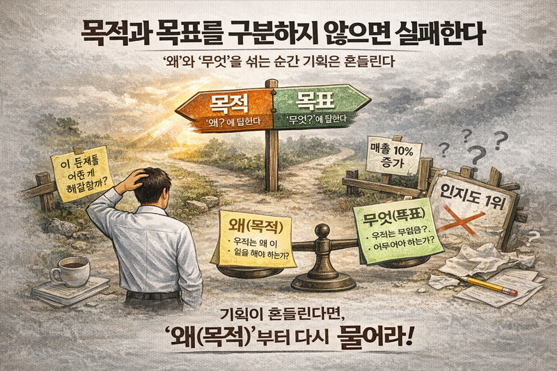 기획을 시작할 때 대부분은 이렇게 말한다. "아이디어는 있는데, 정리가 안 됩니다." 그런데 정말 문제는 아이디어가 많아서일까? 놓치기 쉬운 진짜 이유는 기획의 의도를 정리하지 않은 채 실행 방법부터 떠올리기 때문이다. 기획이 복잡해지는 이유는 크게 두 가지다. 첫째, 기획 의도가 빠져 있다. 기획 의도는 거창한 철학이 아니다. 이 기획을 통해 무엇을 해결하려는지, 왜 지금 이 방식이어야 하는지에 대한 최소한의 답이다. 이 질문이 정리되지 않으면 하고