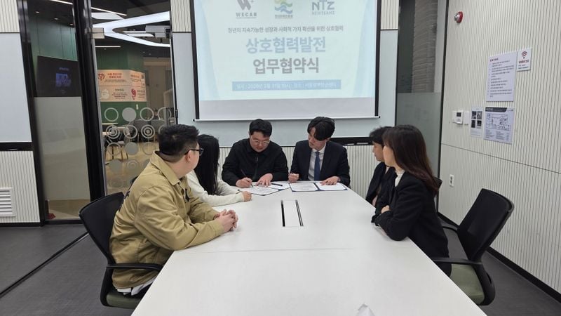 사단법인 청년문화진흥원과 사단법인 위캔(We Can)이 공익사업 협력 강화를 위한 업무협약(MOU)(장소:서울광역청년센터)을 체결했다.