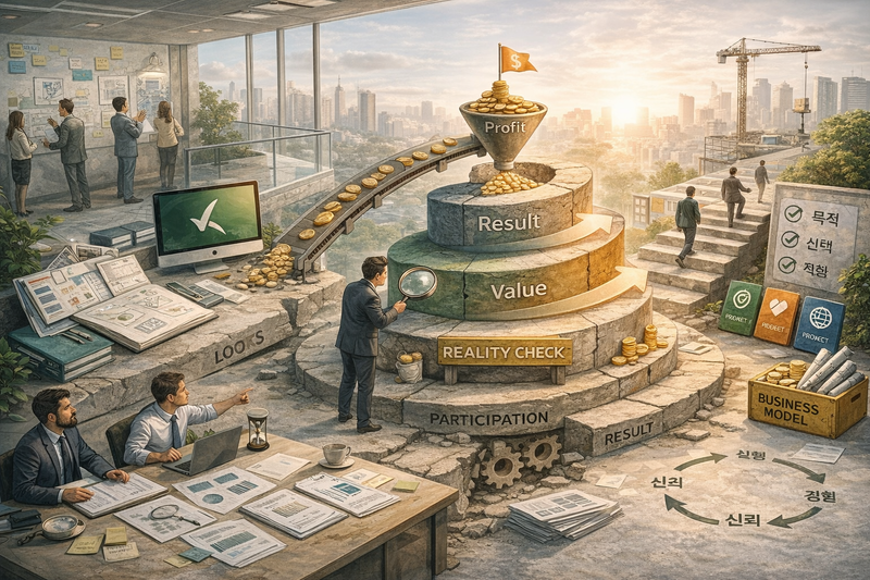 현장에서 자주 발생하는 문제는 BM이 너무 빨리 ‘완성’되어 버리는 경우다. 처음부터 깔끔하게 정리된 모델은 대부분 검증이 아니라 가정 위에 세워진다. 그래서 실행 단계에 들어가면 처음 설계했던 흐름과 현실이 어긋나기 시작한다.